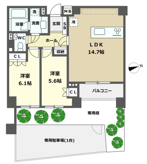 | 専有面積 | 60.70m2 | 所在階 | 1階 |