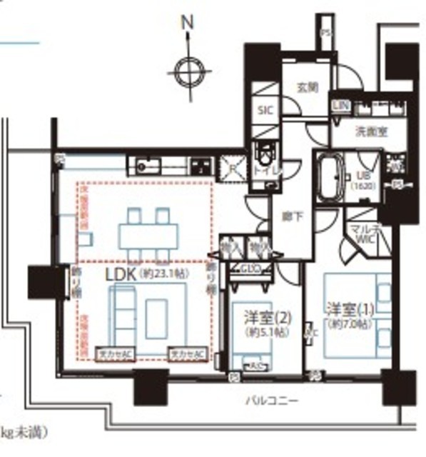 | 専有面積 | 91.48m2 | バルコニー面積 | 24.8m2 |