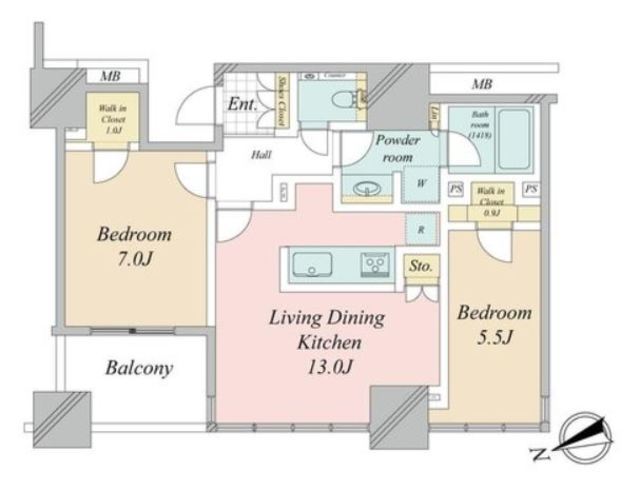 | 間取り | 2LDK | 方角 | 北西 |