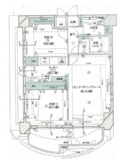 専有面積 67.02m2 所在階 13階