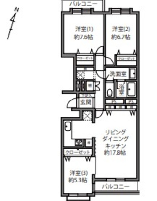 | 専有面積 | 84.77m2 | バルコニー面積 | - |