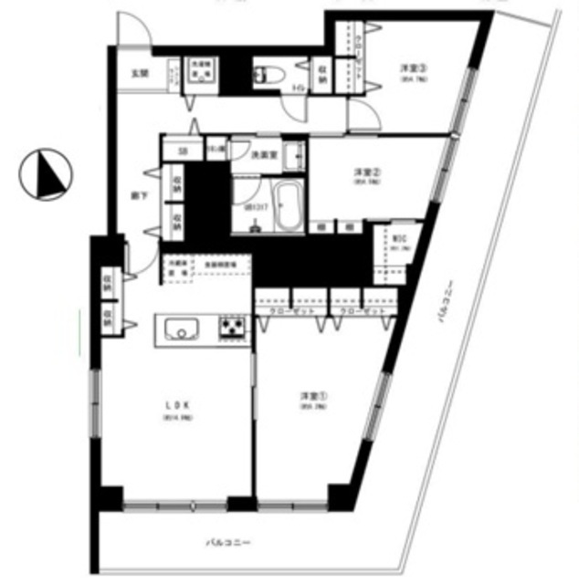 | 専有面積 | 84.02m2 | バルコニー面積 | 28.1m2 |