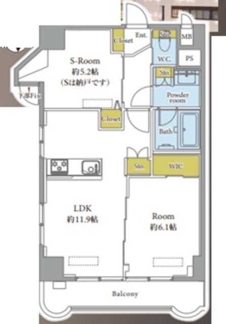 専有面積 51.07m2 バルコニー面積 5.93m2