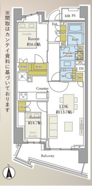 専有面積 57.60m2 バルコニー面積 8.58m2