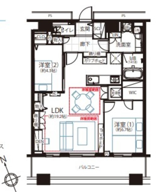 間取り 2LDK 方角 南西
