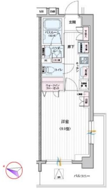| 間取り | 1K | 方角 | 西 |