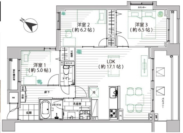 間取り 3LDK 方角 南東