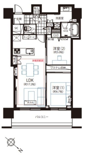 専有面積 68.41m2 バルコニー面積 12.87m2