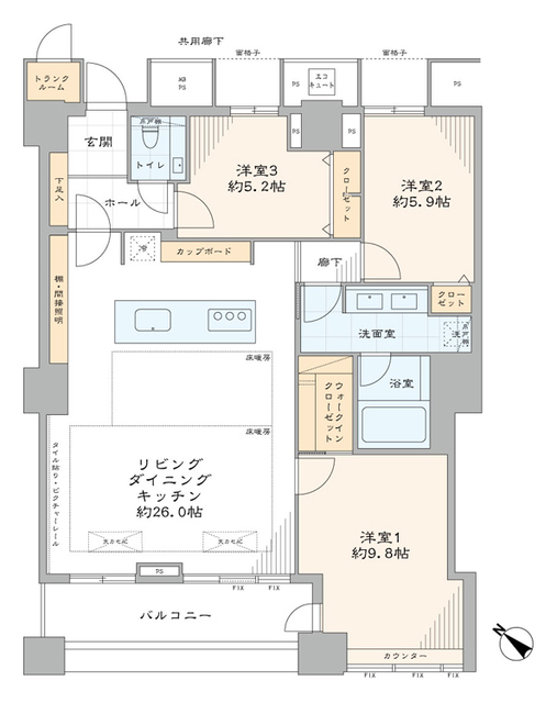 専有面積 102.66m2 バルコニー面積 8.66m2
