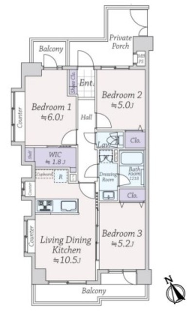 | 専有面積 | 62.06m2 | 所在階 | 3階 |