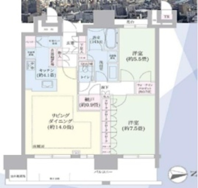 | 専有面積 | 73.18m2 | バルコニー面積 | 14.7m2 |
