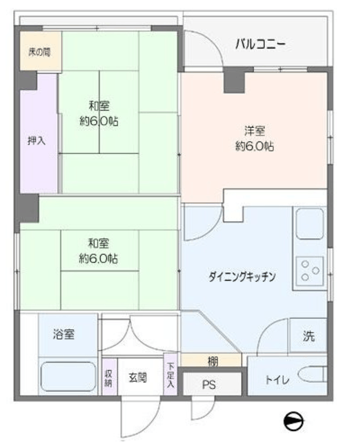 間取り 3DK 方角 西